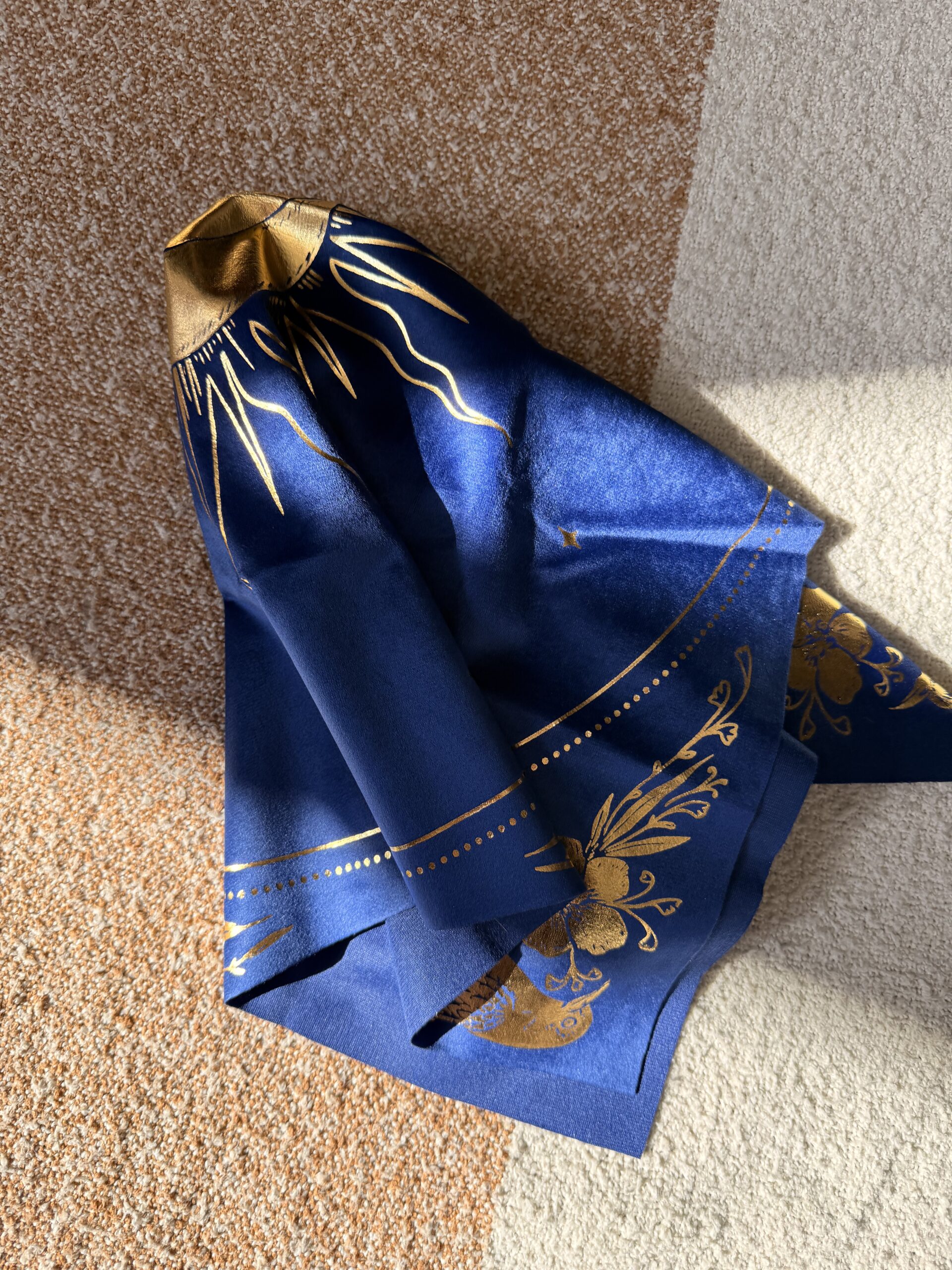 Nappe d’autel en velours – « Céleste » : Velours marine + feuille d’or