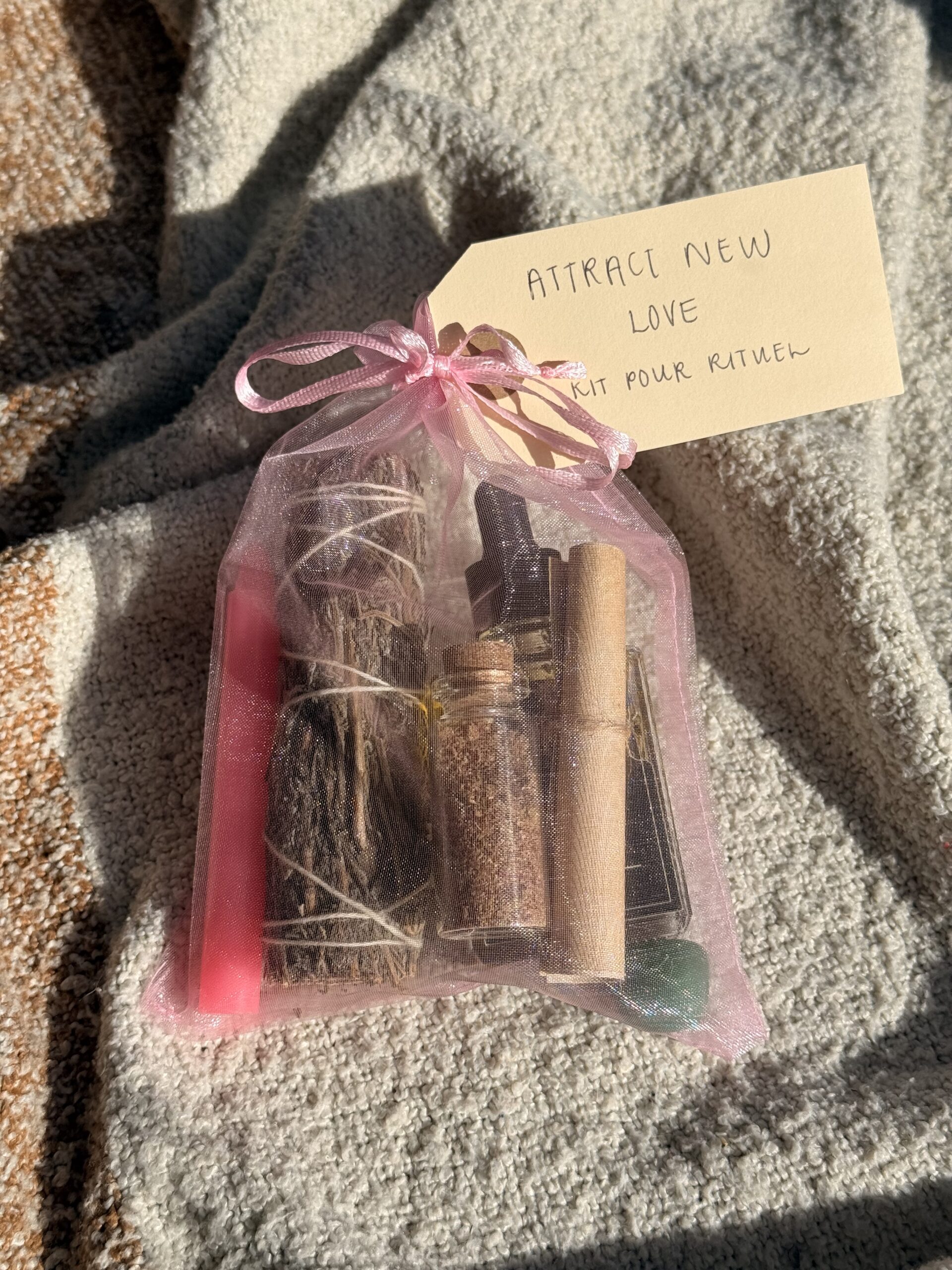 This Attract New Love Magic Kit includes everything needed for a love attraction ritual, featuring candles and tools to manifest new connections. Perfect for those seeking to invite new romantic love into their life.