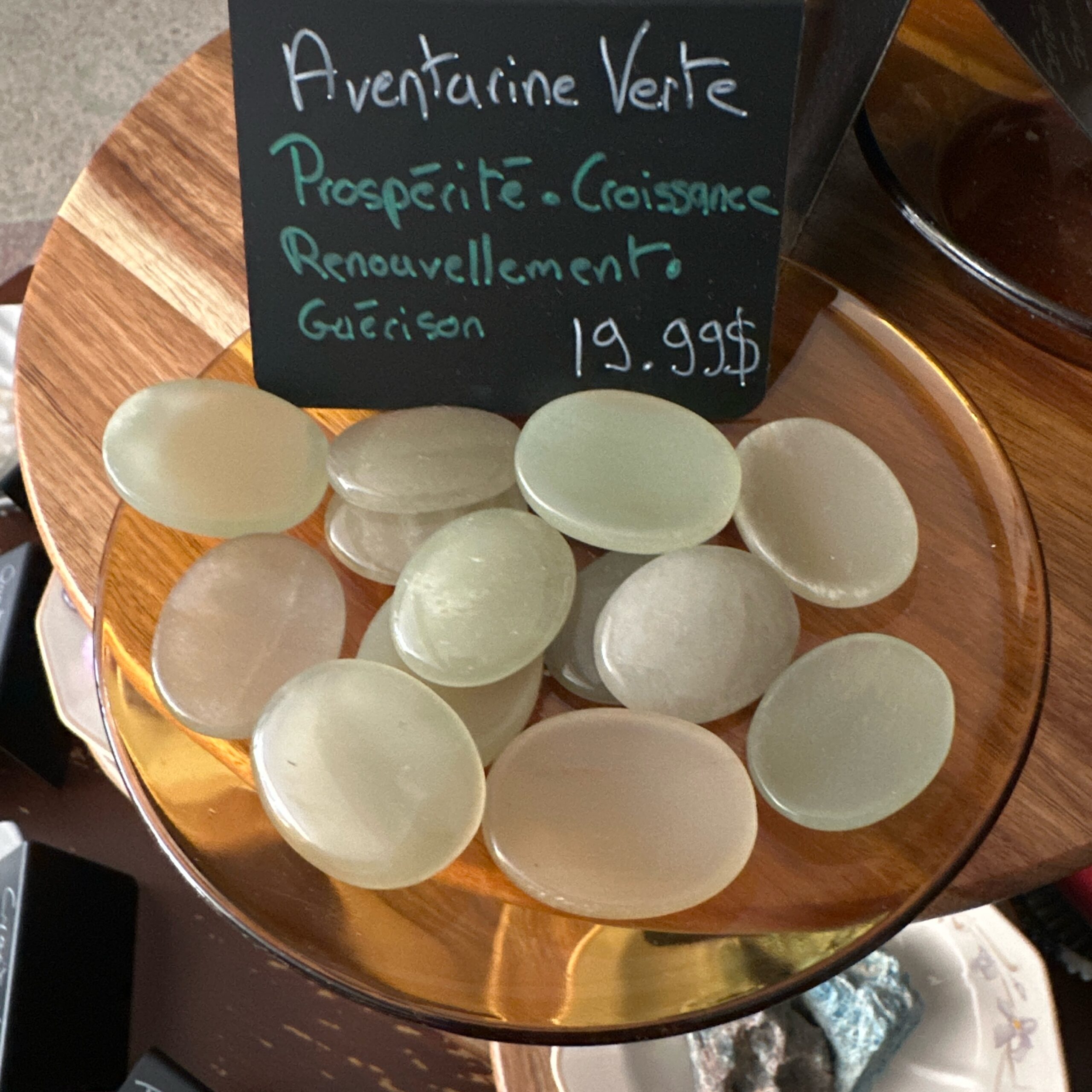 The Green Aventurine Worry Stone is a polished gemstone known for its association with abundance, renewal, and healing properties. Its smooth surface fits comfortably in the palm, making it ideal for meditative practices or stress relief. Renowned for its calming energy, this stone is a thoughtful addition to any wellness routine or crystal collection.