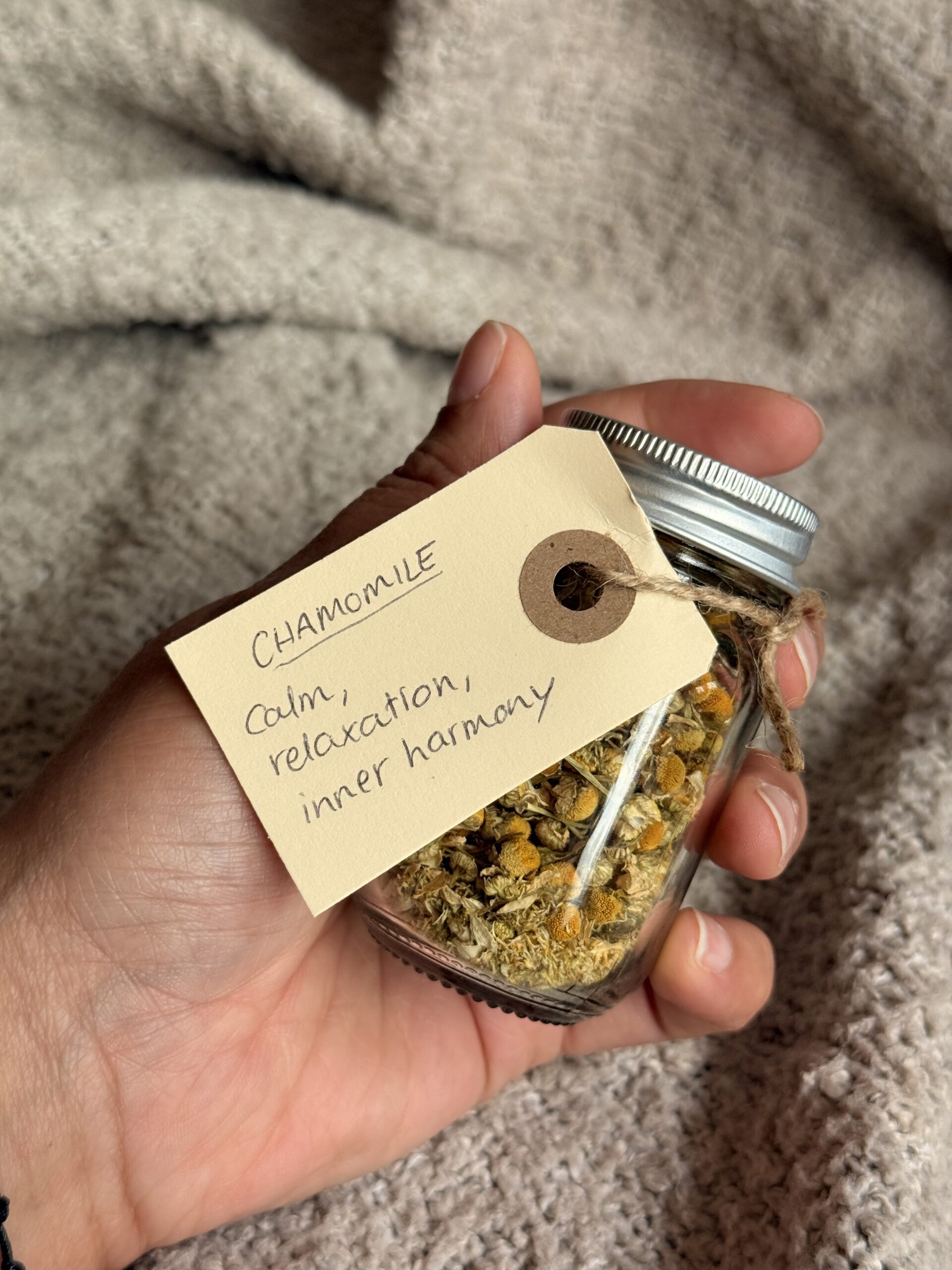Chamomile carries peaceful, nurturing energy and is often used for relaxation, emotional comfort, and calming the mind and spirit. Ideal for sleep magick, healing work, and restoring harmony.