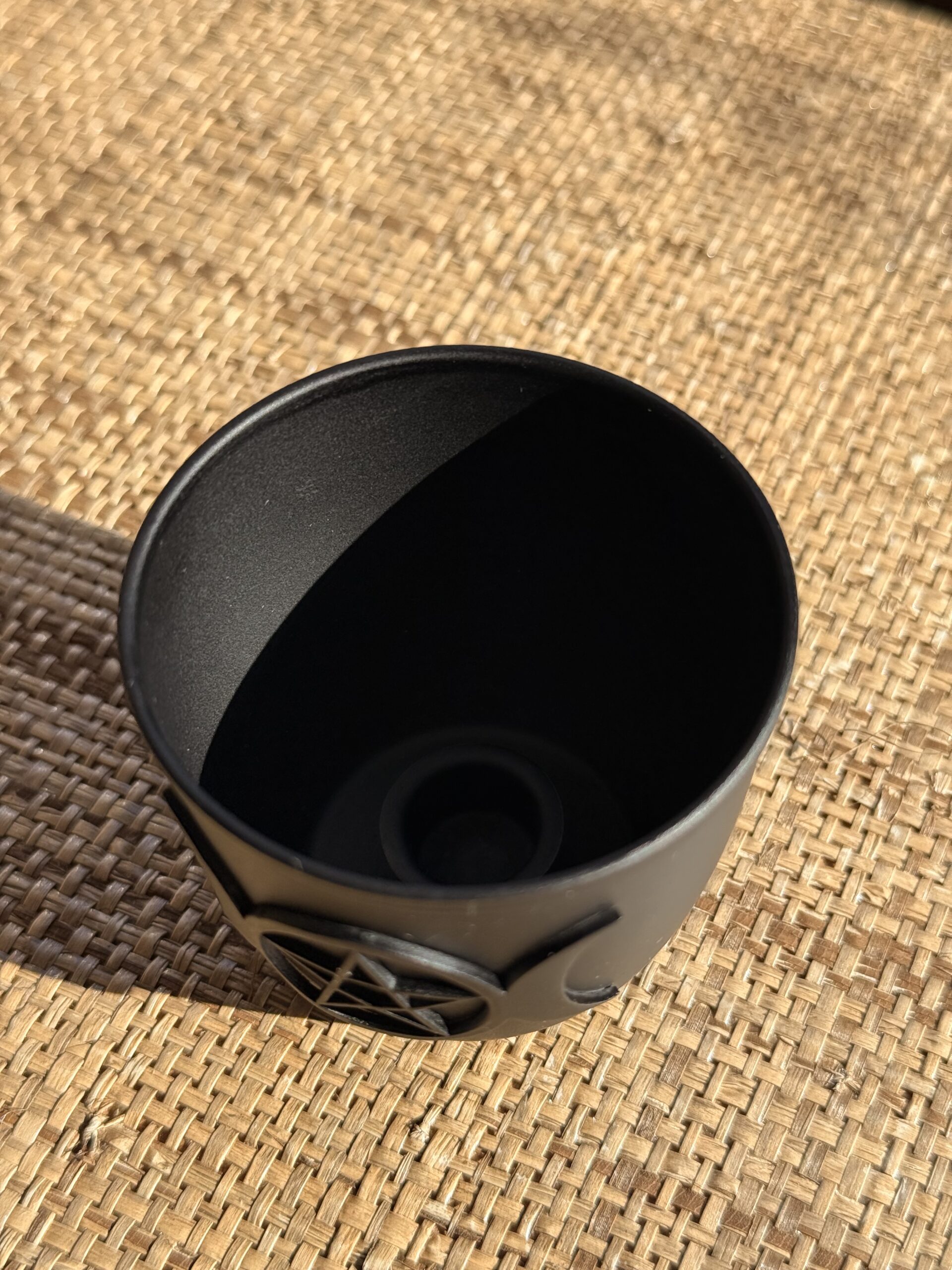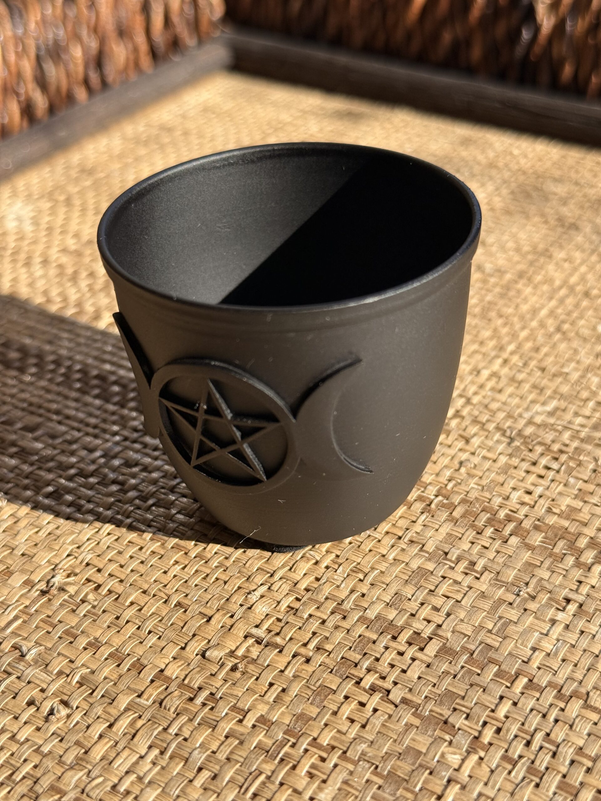 Mini Candle Holder-Iron Pot-Triple Moon Pentacle 2.5″
