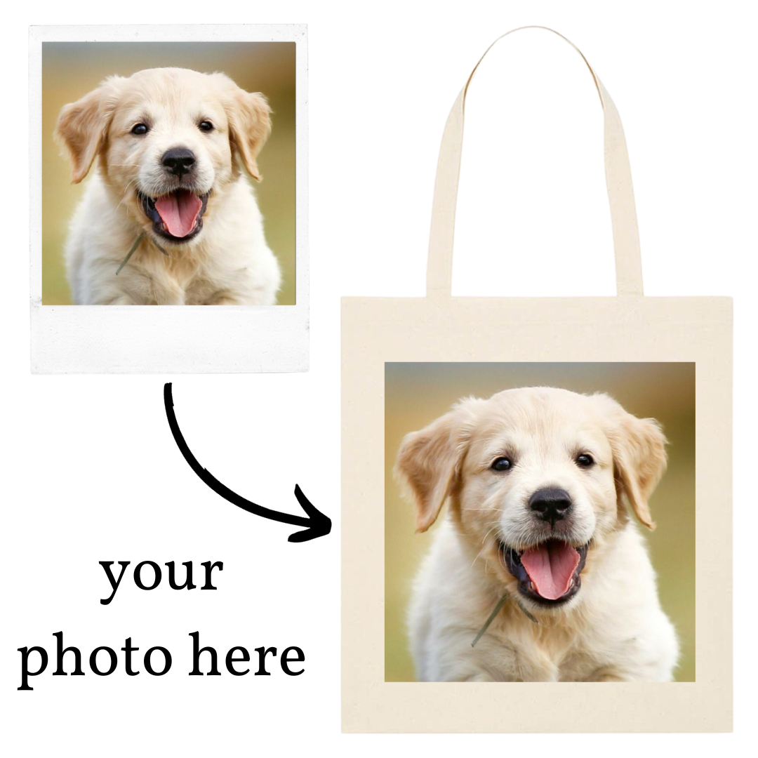 Custom Tote Bag Any Image or Text in Black or White: White