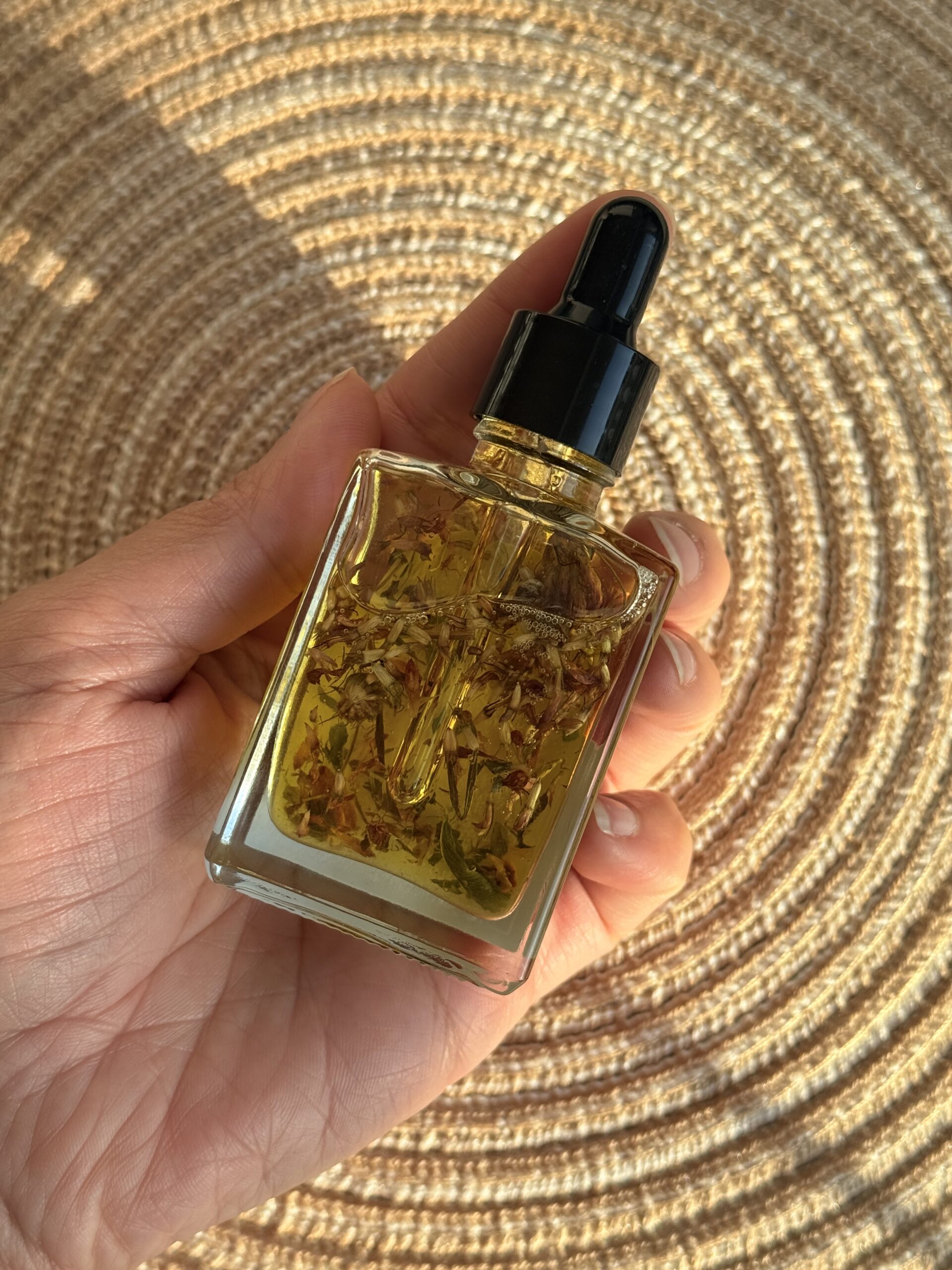 Handmade in Canada with jojoba oil, natural herbs and essential oils. Our oils are packaged in a 1oz/30mL flacon with dropper for easy use.