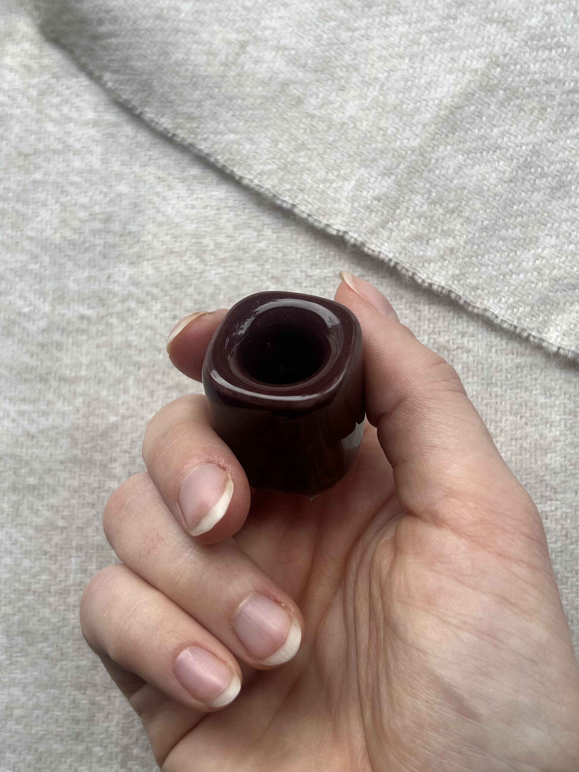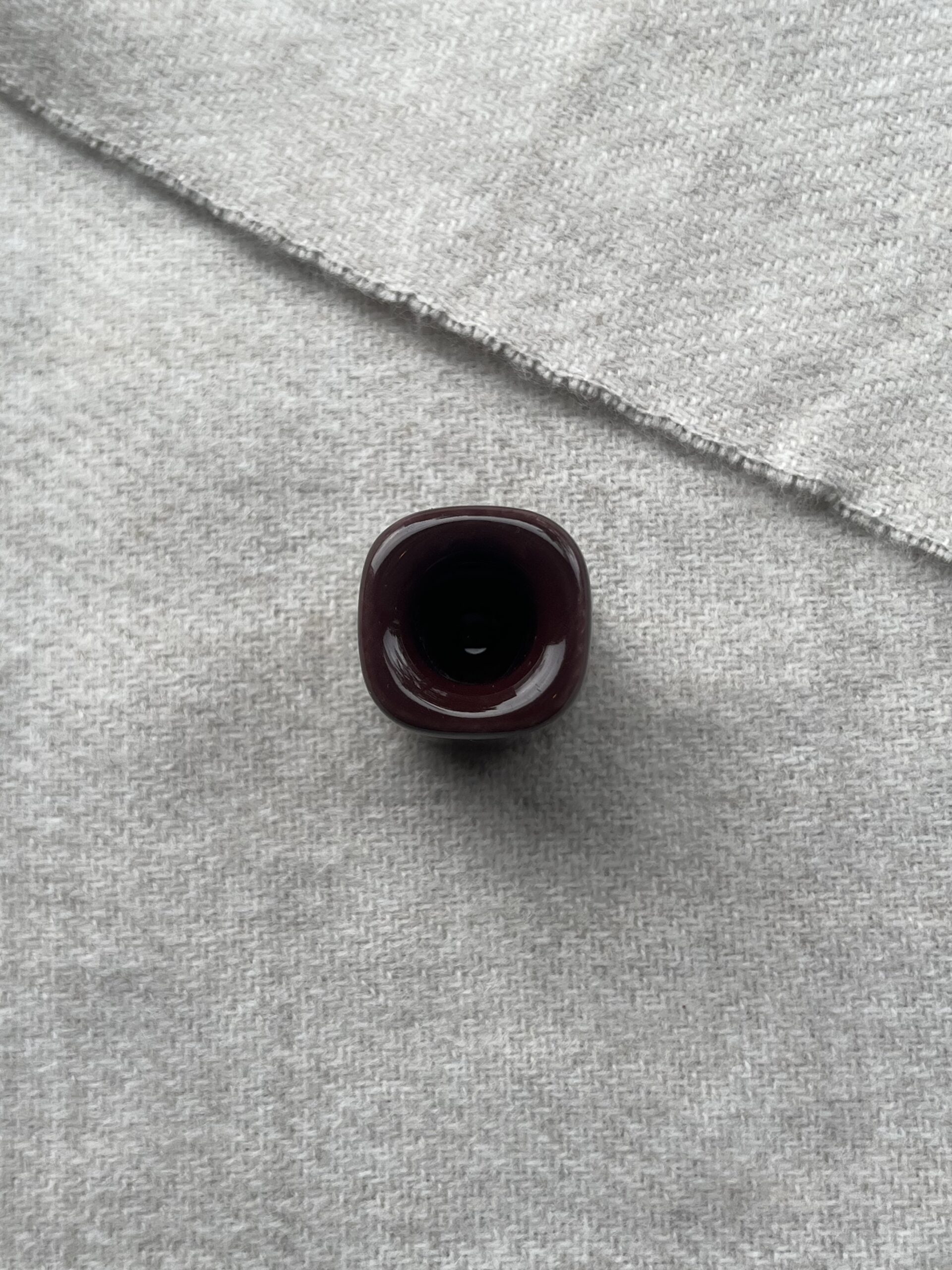This mini burgundy candle holder features an elegant design and a vibrant color. Ideal for holding small ritual candles.