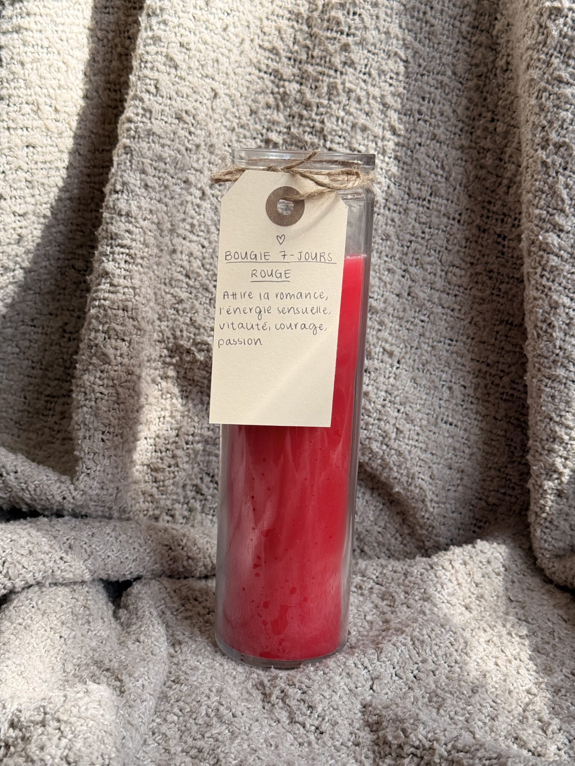 The red 7-day candle is slightly scented and ideal for intentions involving love, passion, and desire. Its long-lasting design ensures continuous energy for your rituals and spiritual practices.