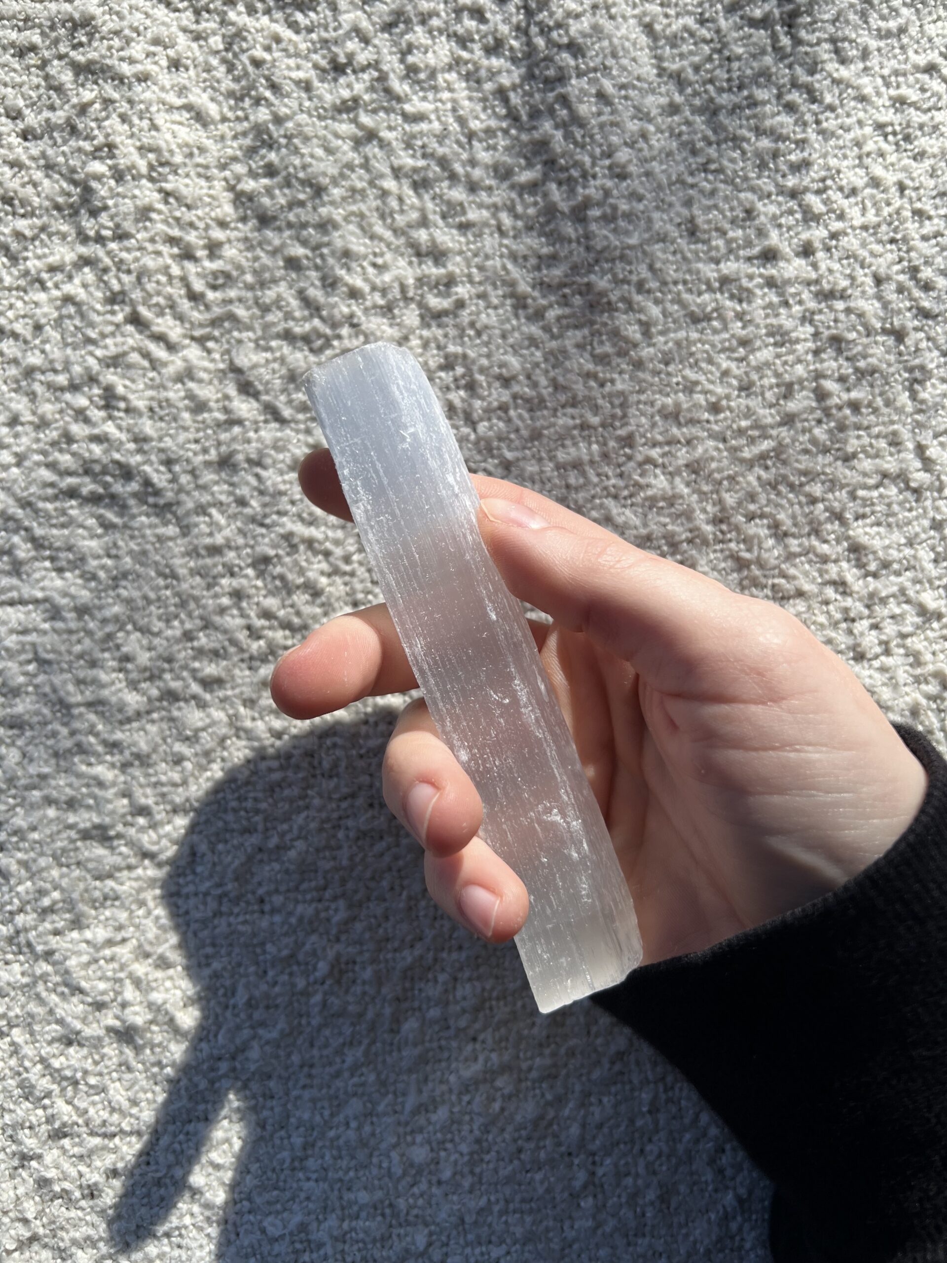 Selenite is a translucent crystal known for its association with purification and inner peace. Often used for spiritual grounding, it is believed to promote clarity and healing energy in various practices.