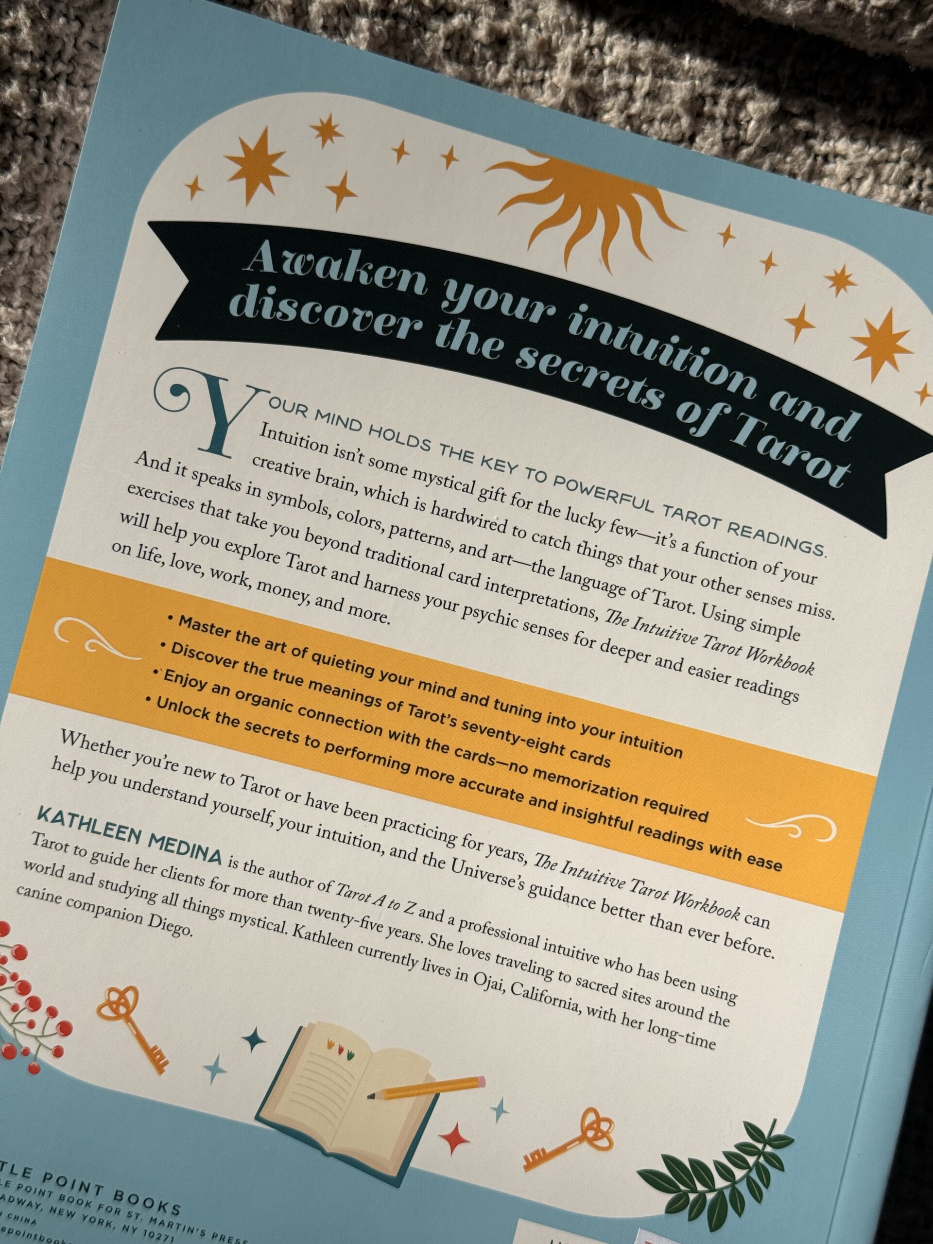 The Intuitive Tarot Workbook is a hands-on guide designed to help you deepen your connection with the tarot and trust your intuition. Packed with exercises, spreads, and reflective prompts, it encourages personal exploration, self-discovery, and practical mastery of the cards.